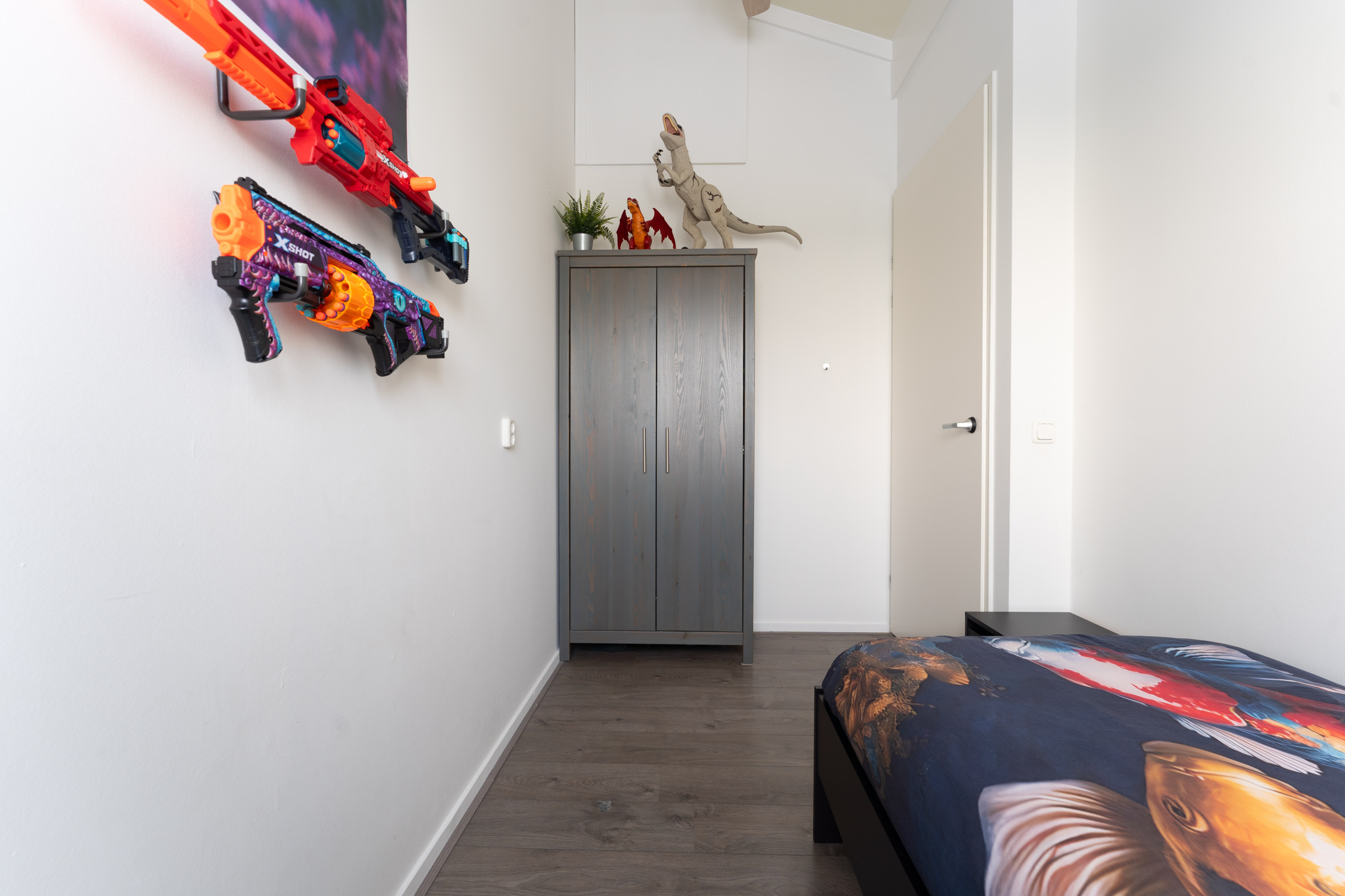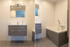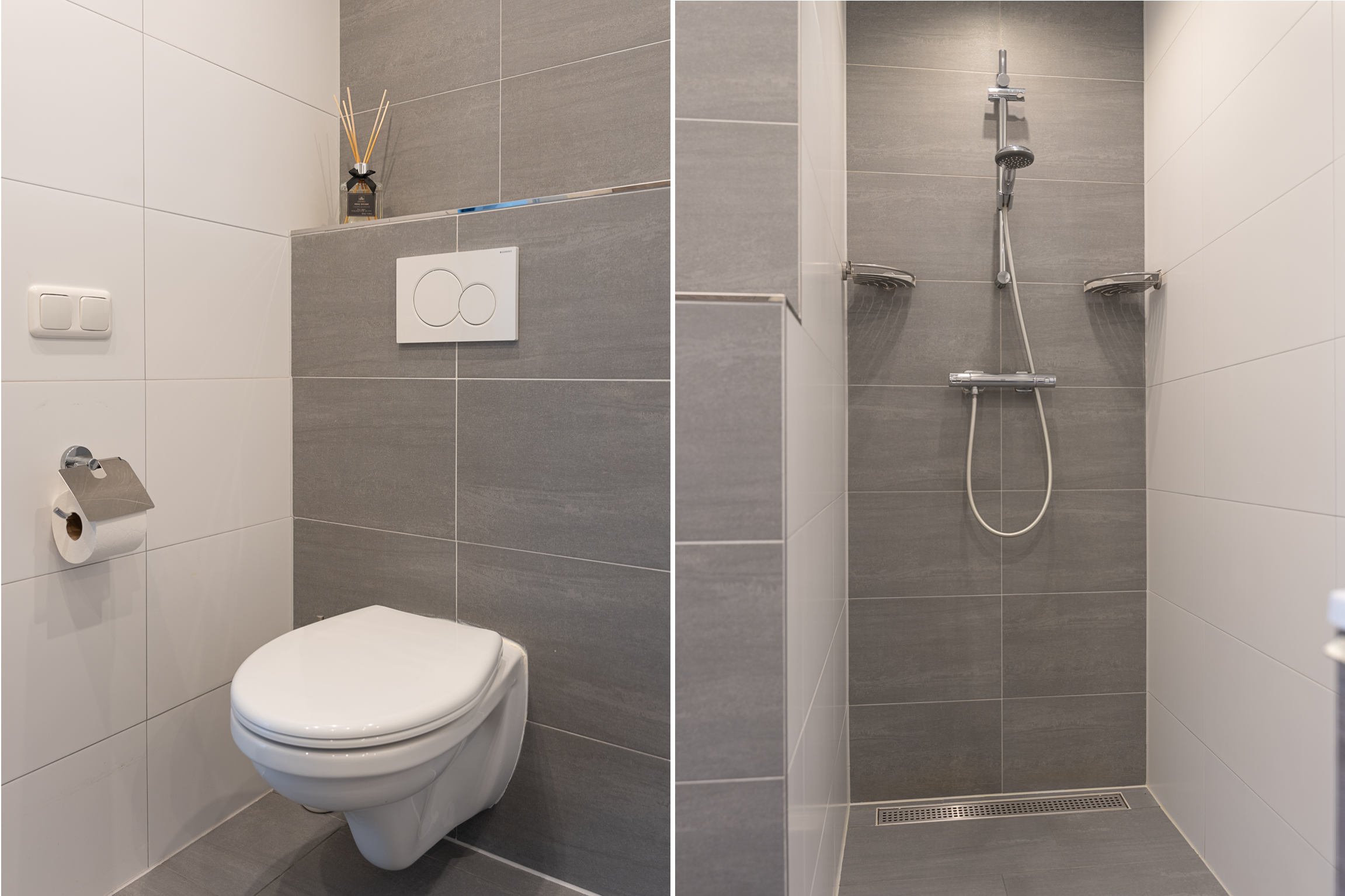 Op de verdieping bevinden zich drie slaapkamers, een praktische bergkast met cv-opstelling en een tweede badkamer met bad, inloopdouche, wastafel en toilet.